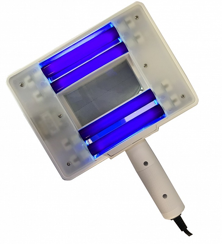 Profesionální UV-A dlouhovlnná (368 nm) Woodova lampa s vestavěnou lupou.