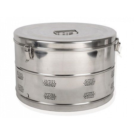 Cylindrisk tromle til sterilisering i autoklave eller tørsterilisator.