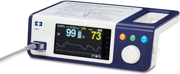 Das bettseitige SpO2-Überwachungssystem von Nellcor bietet ein kompaktes Design mit erweiterten Funktionen, integriertem Griff und einer intuitiven, benutzerfreundlichen und lesbaren farbigen Benutzeroberfläche, um das Überprüfen und Herunterladen kritischer Patientendaten durch einen Teil des Arztes zu erleichtern.