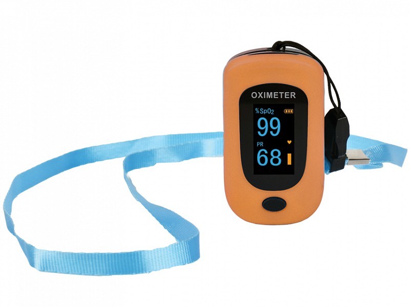 - display a 2 colori della SpO2, PR, PI, plestimogramma e istogramma del battito, allarmi visivi ed acustici