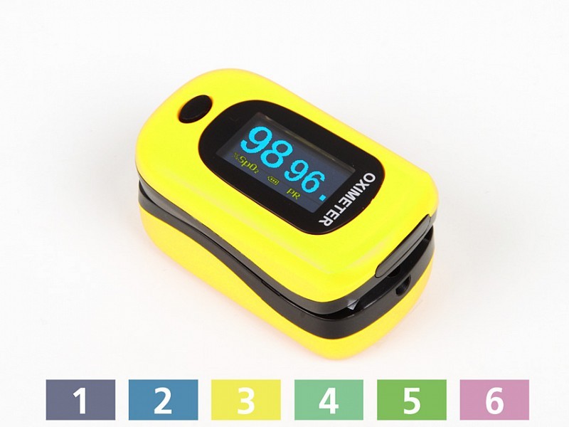 - display a 2 colori della SpO2, PR, PI, plestimogramma e istogramma del battito, allarmi visivi ed acustici