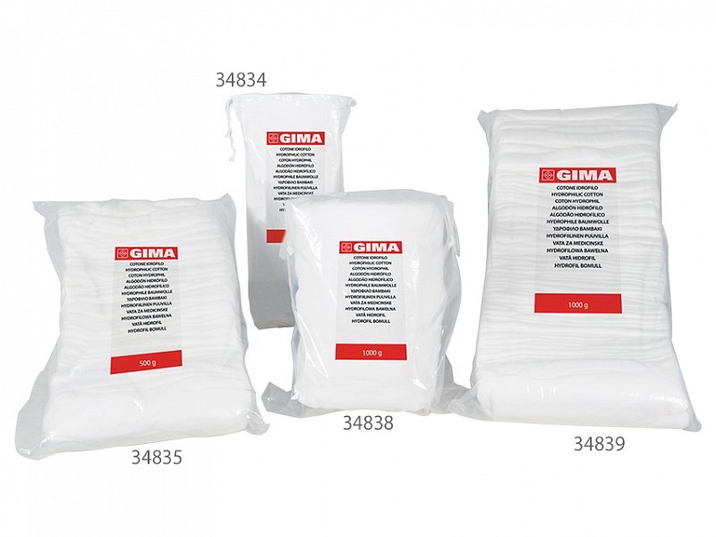 Cotone idrofilo 100% per uso sanitario e cosmetico, perl’igiene, per l’assorbimento di essudato, per la disinfezione della cute non lesionata.