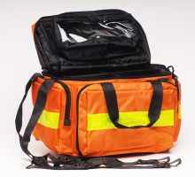 Borsa in robusto nylon con bande perimetrali riflettenti, 4 comparti di cui 1 centrale con 2 scomparti interni, 2 tasche laterali e 1 tasca frontale con tasche ed elastici per piccoli oggetti e strumenti, chiusure con cerniera, parte inferiore della borsa rinforzata e con piedini d''appoggio, maniglie e 2 cinghie per trasporto a tracolla o come zaino.