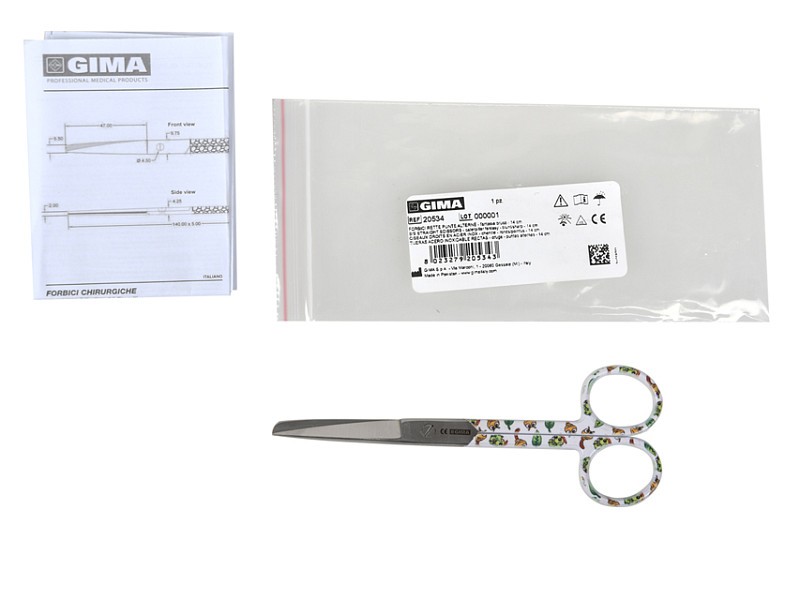 Forbici in acciaio inox rette punte alterne - fantasia bruco - 14 cm