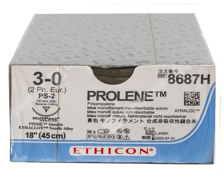 Sutura monofilamento ethicon prolene blue - 3/0 ago 19 mm ps-2 - conf. 36 pz.