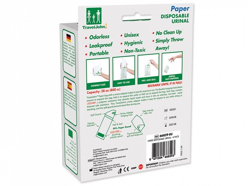 Traveljohn wc portatile in carta - 800 cc - conf. 4 pz.