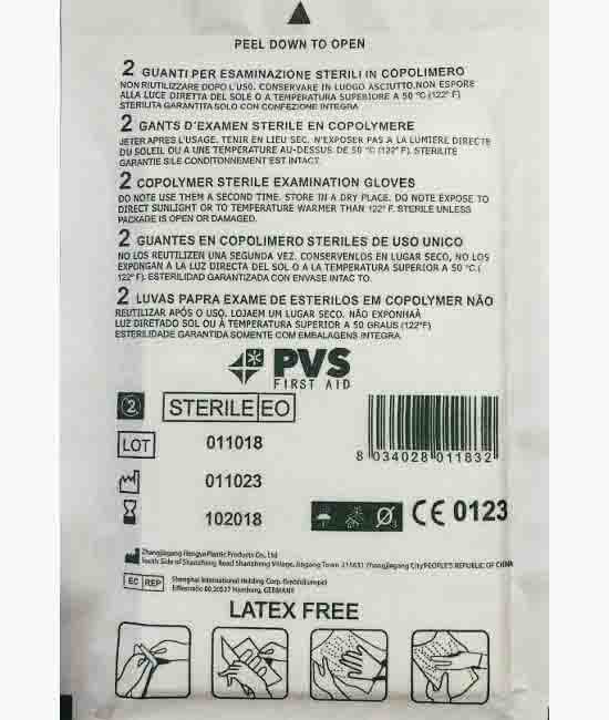 Paio guanti sterili in copolimero latex free. Taglia da M a L come vestibilità.