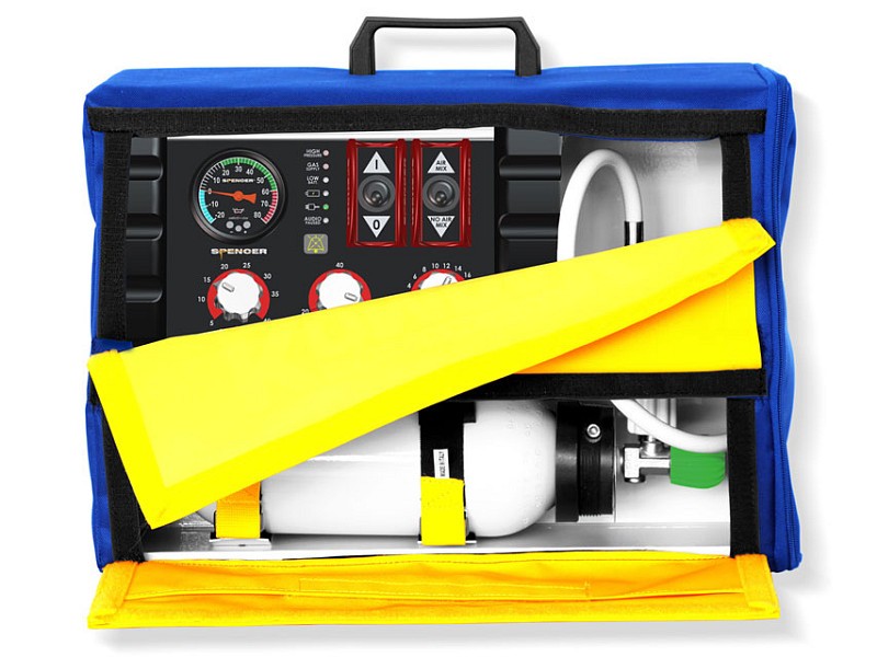 Respiratore Kompak con valigetta: la valigetta contiene il respiratore 170 NTX e la bombola di ossigeno con regolatore della pressione, pronta all’uso.