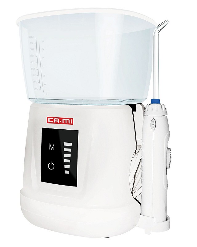 L’idropulsore FAMILY CLEAN di CA-MI è lo strumento ideale per l’igiene quotidiana di denti, gengive e lingua grazie al kit di 6 punte con porta accessori incluso.