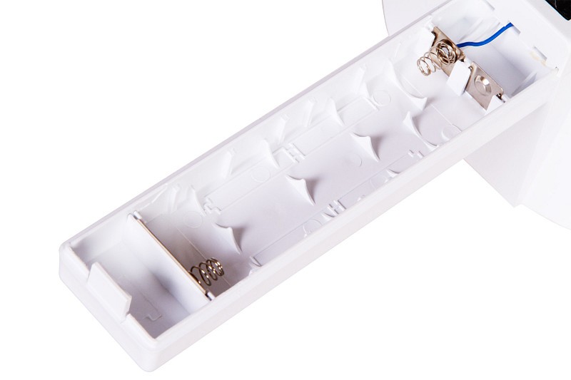 Il telaio e l’impugnatura di questa lente sono realizzati in plastica. La luce è alimentata a batterie (da acquistare separatamente).