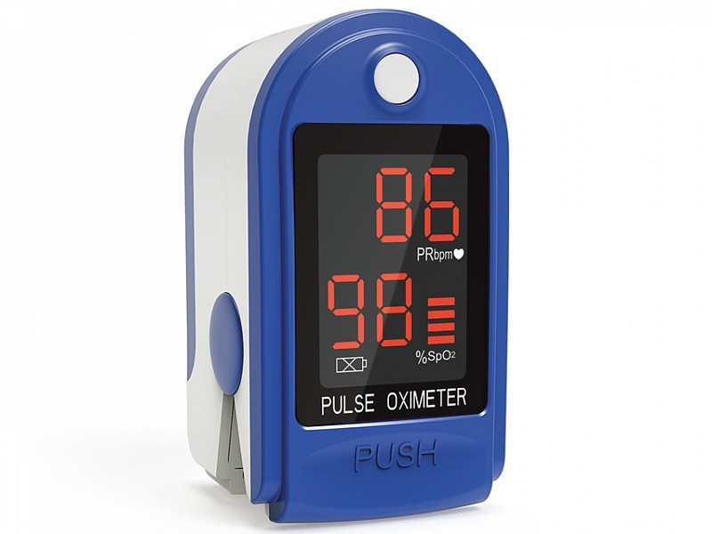 Pulsiossimetro per la misurazione della saturazione di ossigeno e della frequenza cardiaca dal dito del paziente.