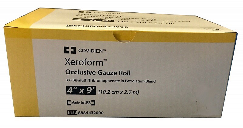 La medicazione Xeroform Occlusive Petrolatum Gauze è una medicazione non aderente che contiene 3% di tribromofenato di bismuto in una miscela di petrolato su una garza a maglia fine.