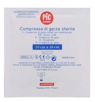 Compresse di garza tagliate sterili 4 strati, 10 x 10 in busta singola