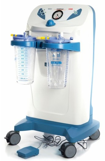 NEW HOSPIVAC 400 è un aspiratore chirurgico ad alimentazione elettrica 230V ~, da utilizzarsi per l'aspirazione di liquidi corporei (come ad esempio muco, catarro e sangue) e dotato di 4 ruote antistatiche delle quali due con dispositivo frenante, adatto per l'utilizzo in sala operatoria, e maniglia di trascinamento.