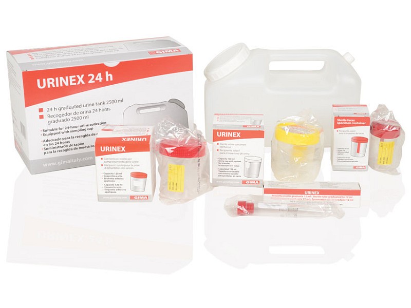 Tanica in polietilene per la raccolta delle urine per 24 ore, in scatola singola.