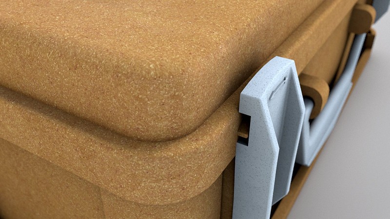 FUTURA è la prima valigetta ecosostenibile, realizzata al 100% con materiali riciclati addizionando PP/Farina di Legno (WPC-Wood Plastic Compound) con cariche vegetali tra il 30-40%. Mantiene tutte le qualità del legno, la resistenza del PP e preserva l'ambiente dall'immissione di plastiche dannose.