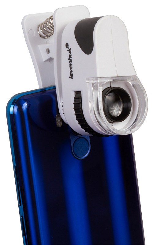 - Microscopio tascabile con una levetta per il fissaggio a un dispositivo mobile