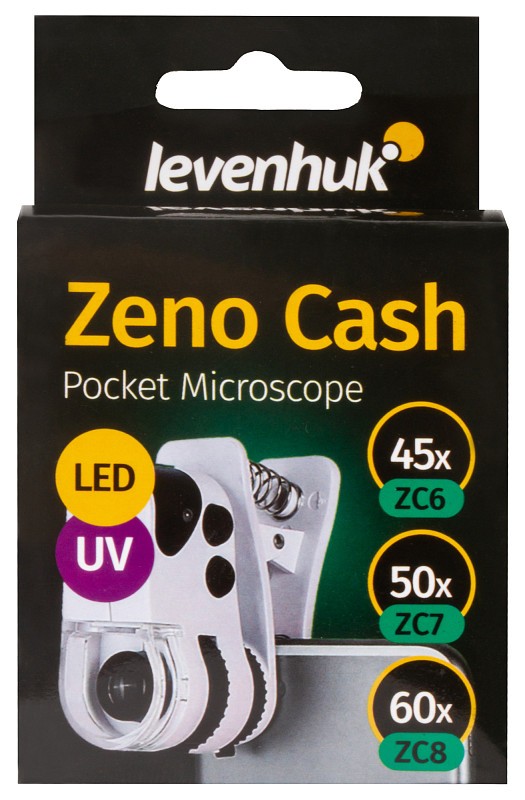 Il microscopio tascabile Levenhuk Zeno Cash ZC6 è uno strumento di ingrandimento con luce integrata. Grazie alla sua luce, può essere usato per verificare le banconote. Questo microscopio è compatto e leggero potete facilmente portarlo con voi a riunioni con partner d’affari o in lunghi viaggi all’estero. È utile nei mercati o nei supermercati: potete controllare ogni banconota che possedete.