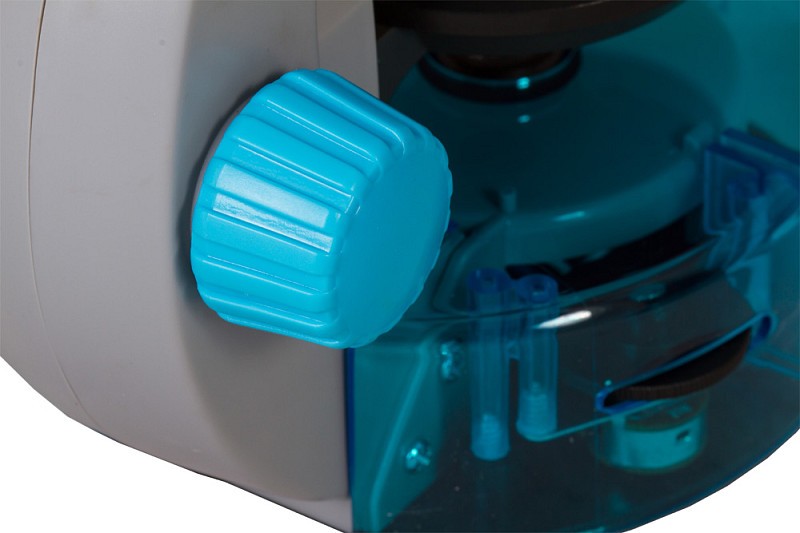 Questo microscopio consente di osservare campioni trasparenti – una goccia d’acqua di acquario, vetrini sottili di piante o vetrini preparati da microscopio. Gli oggetti devono essere posizionati sul comodo tavolino rotondo e fissati con due levette. Grazie a queste levette, i campioni studiati saranno sempre al loro posto. La luce emessa dai diodi a LED (posizionati sotto il tavolino) passa attraverso i campioni, creando l’immagine ingrandita nell’oculare. È possibile regolare il livello di luminosità.