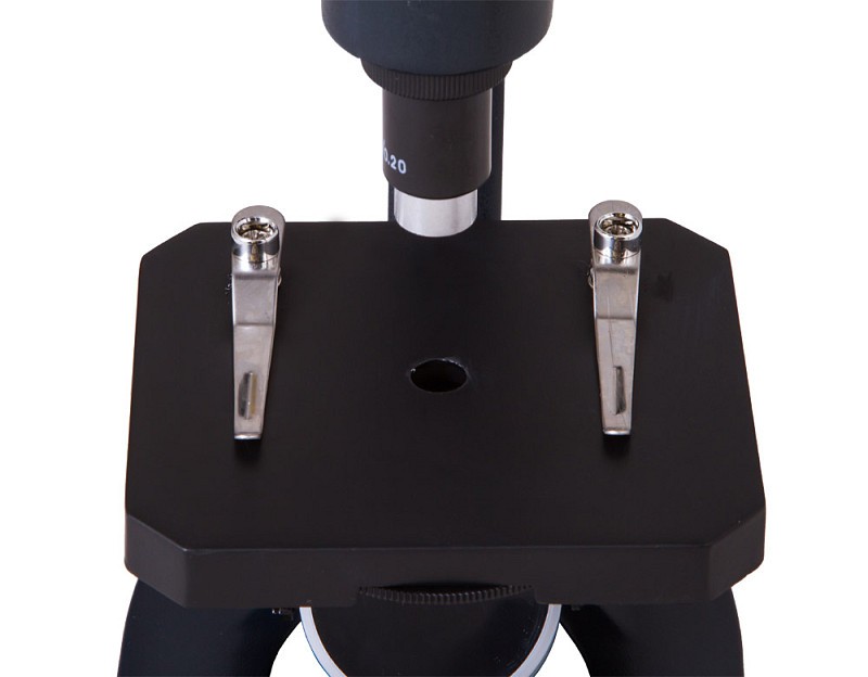 Il tavolino da 100x90 mm (3,9x3,5 pollici) è perfetto per osservazioni di uno o due campioni. Per preparare il campione, per prima cosa, posiziona un campione sul vetrino vuoto, quindi rilascia lentamente un vetrino coprioggetto sul campione. Il vetrino finale viene poi posizionato sul tavolino e fissato con delle levette. Usa il pomolo della messa a fuoco macrometrica per mettere a fuoco la tua visione spostando il tubo del corpo del microscopio verso l’alto e il basso (da intervalli di 20 mm (0,8 pollici).