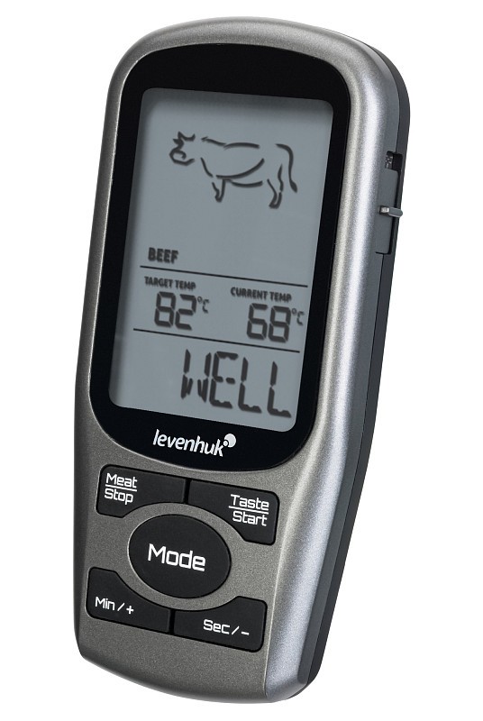 Levenhuk F30 è un termometro a sonda wireless progettato specificatamente per la massima precisione nella misura della temperatura di cottura delle carni. La sua funzionalità più interessante è l’opzione di scelta del tipo di carne e del grado di cottura desiderato. Ciò rende possibile ottenere un piatto cucinato alla perfezione con il minimo sforzo. Questo strumento è anche dotato di timer e di una funzione di notifica tramite cicalino per quando si raggiunge la temperatura limite.