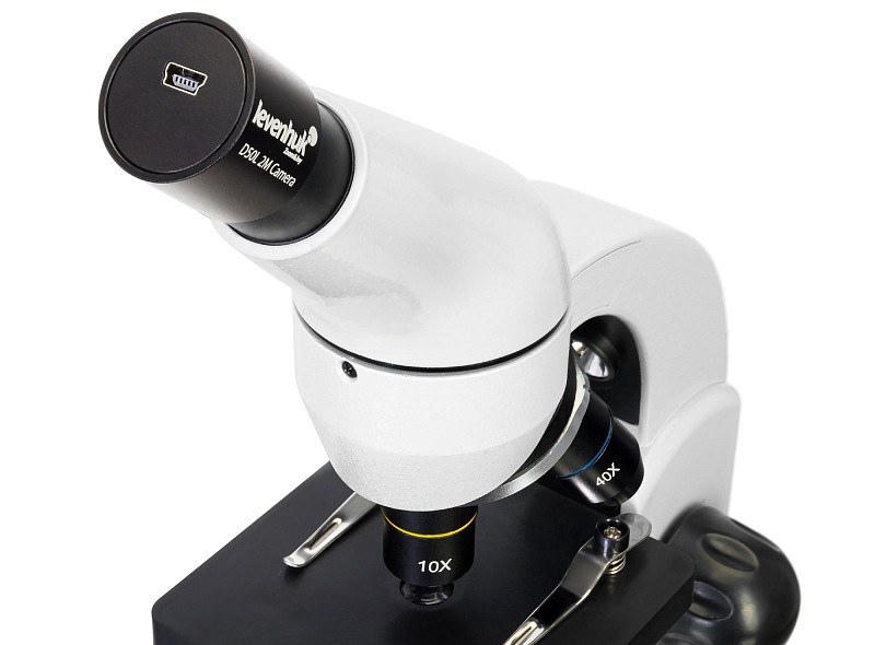 Il microscopio Levenhuk Rainbow D50L PLUS è anche compatibile con altre fotocamere digitali Levenhuk (fotocamere aggiuntive da acquistare separatamente). Le fotocamere Levenhuk sono installate nel tubo dell’oculare, al posto di un oculare.