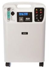 L'M50 è un concentratore di ossigeno fisso compatto e leggero, che utilizza la tecnologia PSA standard per fornire un flusso di ossigeno fino a 5 litri al minuto.