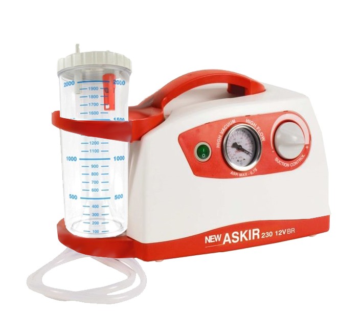NEW ASKIR 230/12V BR è un aspiratore elettrico per l’aspirazione di liquidi corporei, orale, nasale e tracheale nell’adulto o nel bambino.