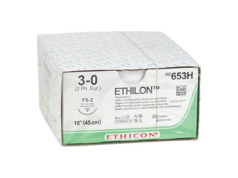 Sutura monofilamento ethicon ethilon - 3/0 ago 19 mm fs-2 - conf. 36 pz.