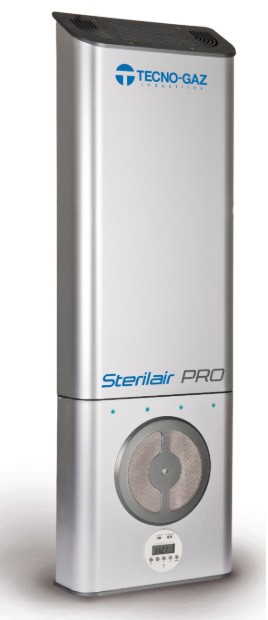 Tecno-Gaz dispose d’un système appelé Sterilair PLUS, certifié pour la stérilisation de l’air, par irradiation et élimination de tous les agents microbiens, y compris les agents pathogènes. Sterilair PLUS a un débit de 100 mètres cubes par heure.