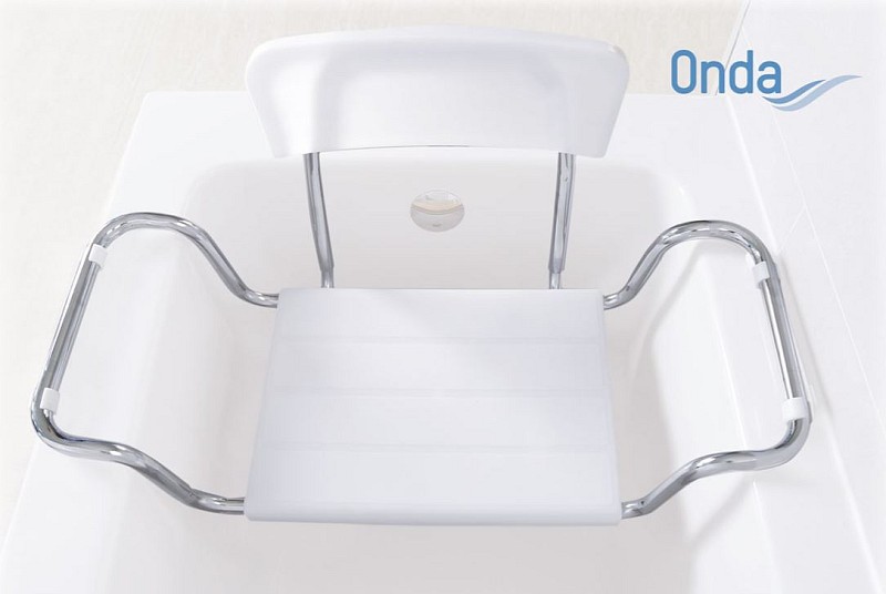 Stolica za kadu Moretti ima strukturu od kromiranog čelika i sjedalo podesivo po širini, od Moplena. Opremljen je i naslonom za leđa.