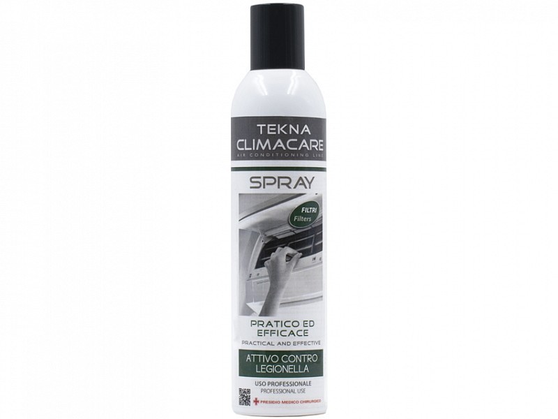 Disinfettante spray attivo su batteri (compresa la Legionella) e funghi, approvato dal Ministero della Salute. Appositamente formulato per disinfettare sistemi di condizionamento dell\'aria, split e pompe di calore, lo spray Climacare agisce direttamente sui microrganismi responsabili delle patologie respiratorie. Usato regolarmente, evita la contaminazione microbica, innanzitutto all\'interno dei sistemi di condizionamento dell\'aria e successivamente nei locali.