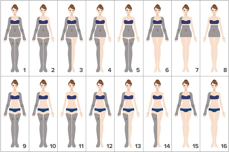 Dotazione pensata principalmente per l’estetica, permette di utilizzare fino a 5 accessori contemporaneamente. L’utilizzo degli applicatori in dotazione, consente di usufruire degli stessi in 16 combinazioni come rappresentato nella tabella. Durante l’utilizzo di 2 bracciali contemporaneamente, la mobilità di chi si sottopone al trattamento è ridotta, quindi l’esecuzione dovrà avvenire in presenza di altra persona che sappia vigilare e con il telecomando a portata di mano. PressoMedical 6.0 è molto potente e può gestire 5 accessori con lieve perdita di pressione. Si consiglia di utilizzare pressioni basse e confortevoli: maggior pressione non significa maggior efficacia!