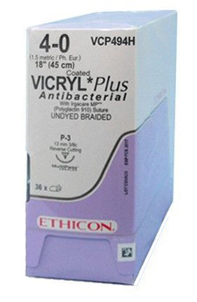 Sutura assorbibile ethicon vicryl plus - 4/0 ago 13 mm - conf. 36 pz.