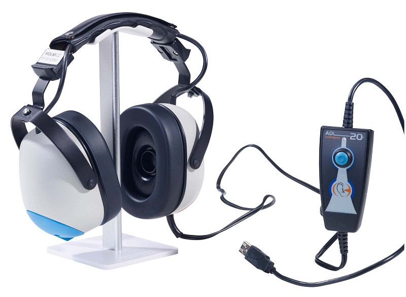 Audiometro AUDIOLYSER ADL20 con cuffia Holmco PD-81, Software Audiowin20, assistenza vocale, 1 lingua e borsa per il trasporto