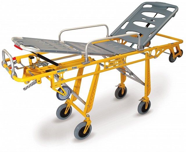 - Carrello anteriore abbassabile per permettere di variare l'altezza di carico della barella su diversi tipi di ambulanze.