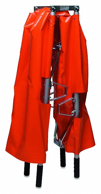 Barella portaferiti pieghevole. Realizzata in alluminio anticorodal anodizzato con telo in poliestere alta tenacità spalmanto in PVC antiputrescente, autoestinguente, lavabile.