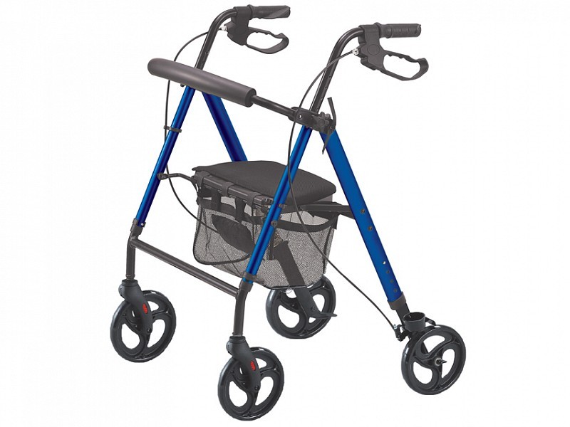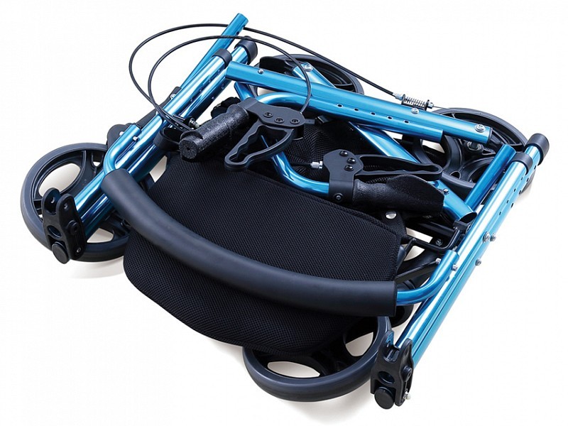 Telaio in alluminio leggero blu con comodo sedile in PP.