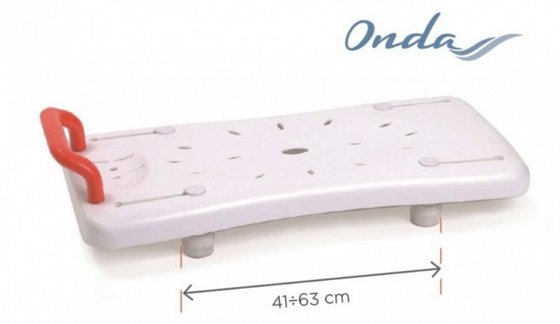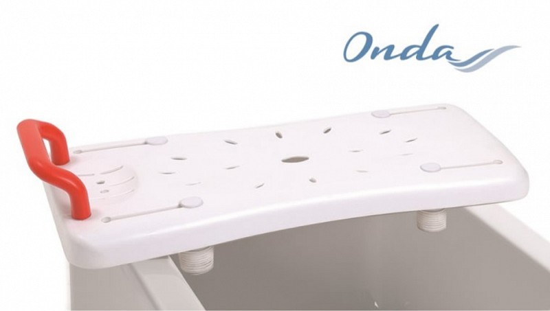 Antislip kunststof badzitje met handgreep en watergaten. Breedte verstelbaar voor meer aanpassingsvermogen.