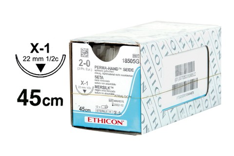 Sutura Ethicon Perma-Hand 737G não absorvível com agulha preta USP 2/0 de 1/2" e 22 mm - 1 peça