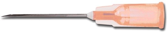 Agulhas hipodérmicas estéreis 25G 0,5 x 16 mm. Cor Laranja. Pacote com 100 unidades.
