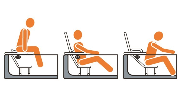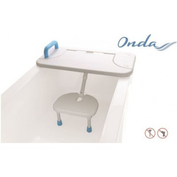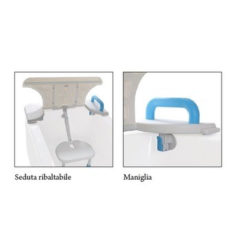 Sedile da vasca con parte centrale che si solleva per consentire più spazio per fare il bagno. Realizzato in PE, struttura in alluminio verniciato, dotato di fermi antiscivolo che proteggono la vasca da bagno da eventuali graffi.