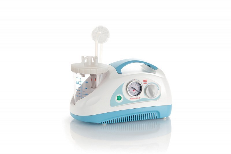 Aspiratore per piccola chirurgia, facilmente trasportabile, leggero e potente grazie al gruppo aspirazione a pistone. E’ idoneo ad un utilizzo continuo. Particolarmente studiato per l’utilizzo domiciliare od in corsia ospedaliera, per l’uso in piccola chirurgia e per tracheotomia. Particolarmente adatto all\'aspirazione di liquidi corporei come muco e catarro. Corpo in ABS autoestinguente con elevato isolamento termico ed elettrico in conformità alle vigenti normative di sicurezza europee. L’aspirazione può essere regolata con una manopola posta sul fronte dell’aspiratore e può essere controllata a mezzo del vacuometro di facile lettura. Il vaso in policarbonato da 1 litro è dotato di valvola di troppo pieno ed è sterilizzabile in autoclave.