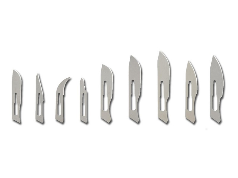 Lame fabbricate in acciaio inox inglese di alta qualità, assicurano un'ottima affilatura ed un perfetto controllo durante il taglio. Confezione in singole bustine di foglie di metallo ed in scatola di cartone da 100 pz. Sterilizzate a raggi gamma.