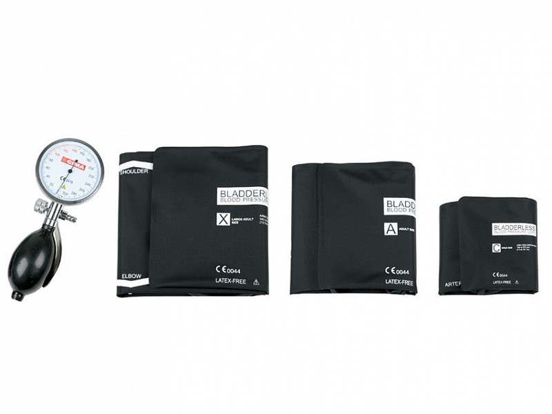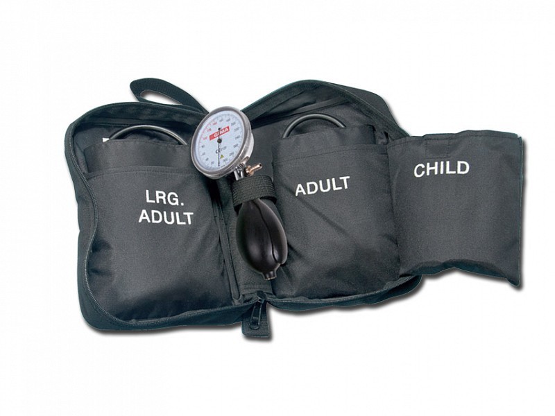Sfigmo Sirio con 3 bracciali: bambino (32910), adulto (32911), obeso (32912) in una borsa di nylon.
