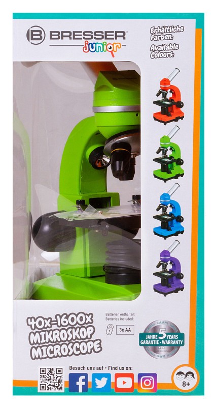 L'adattatore per smartphone consente di salvare le immagini sul cellulare e poi condividerle con amici e parenti. Ci sono talmente tante cose da scoprire nel microscopio, inizia ora con il tuo microscopio per la scuola Bresser! Disponibile nei seguenti colori: rosso verde blu viola.