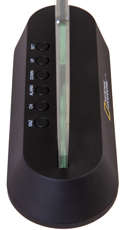 La stazione meteo radiocontrollata Translucidus di National Geographic è dotata di orologio a grandi cifre e di un supporto da tavolo snello ed elegante. I pulsanti di controllo sono stati collocati sul retro per sottolineare il bellissimo design. Comunque, grazie al display trasparente, sono chiaramente leggibili. Oltre al grande orologio radiocontrollato, il display indica anche la temperatura interna e quella esterna una accanto all’altra. Un vero e proprio gioiellino. La stazione meteo può essere utilizzata anche come sveglia ed è dotata di funzione snooze.
