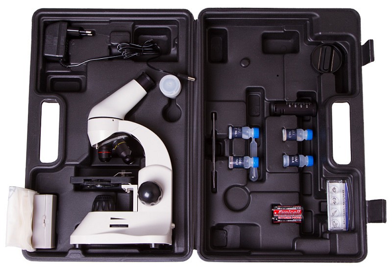 Il microscopio Levenhuk Rainbow 50L è un bel regalo per chiunque si interessi alle scienze e alla biologia. Questo strumento consente di osservare e studiare oggetti famigliari dell’ambiente che vi circonda con un ingrandimento di 40x, 80x, 100x, 200x, 400x e anche 800x! Con questo microscopio, potreste scoprire la struttura di piante, animali e umani date un’occhiata alla vita di organismi microscopici, normalmente nascosti ai nostri occhi, nel proprio micro universo e, ovviamente, fare tanti esperimenti eccitanti. Il kit comprende tutto quello di cui un novizio può aver bisogno – nella confezione troverete vetrini per microscopio pronti per osservare subito così come strumenti che vi permetteranno di creare i vostri vetrini.