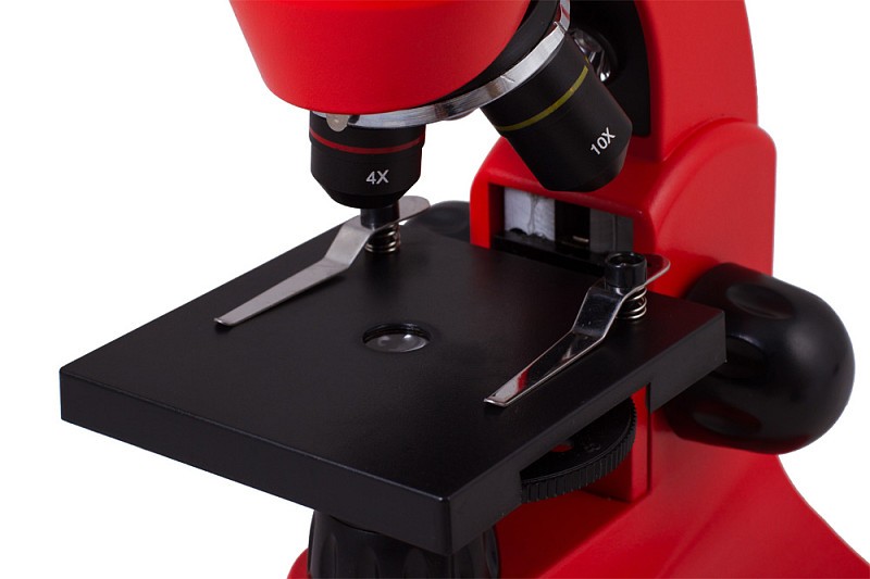 Il microscopio è dotato di tre obiettivi e di una lente di Barlow supplementare, che raddoppia l’ingrandimento di ogni obiettivo usato. Il microscopio consente di osservare campioni con un ingrandimento di 40x, 80x, 100x, 200x, 400x e anche 800x!