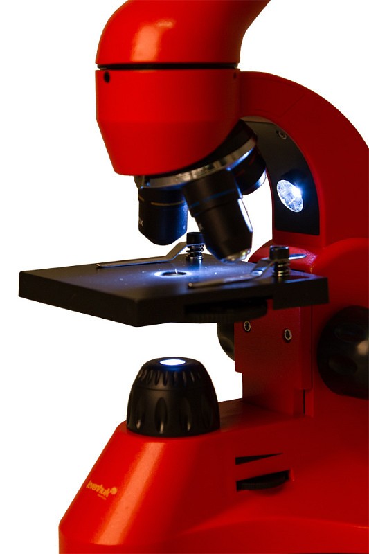 Il microscopio è equipaggiato con due illuminazioni a LED integrate. L’illuminazione più bassa è usata per osservare campioni trasparenti. Con la luce inferiore accesa, potrete trovare vita in una goccia di acqua di acquario o analizzare la struttura cellulare di piante diverse. La luce alta è necessaria per osservare oggetti opachi ad esempio, puoi esaminare la struttura della superficie di una piccola pietra o notare graffi microscopici invisibili all’occhio nudo su superfici metalliche. Con due illuminazioni, avrete anche la possibilità di osservare campioni semi trasparenti – accendete sia la luce superiore che quella inferiore. La luminosità è regolabile, quindi potrete cambiarla facilmente se necessario.